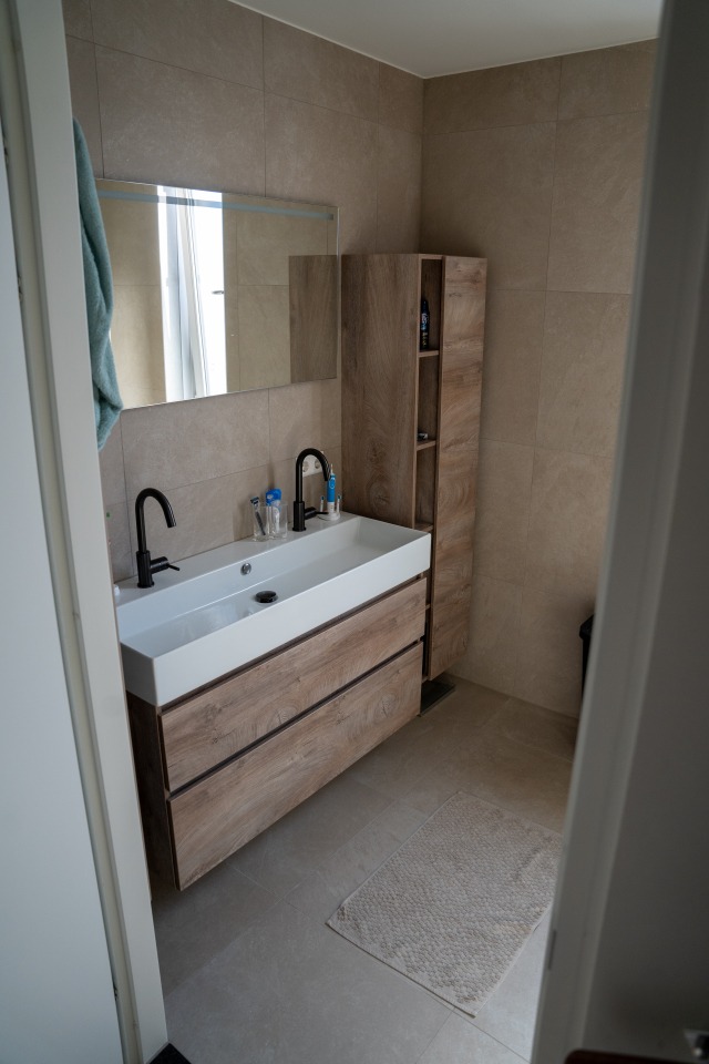 Het resultaat mag er zijn: meer ruimte boven en een schitterende badkamer die aanvoelt alsof je in een hotel bent.